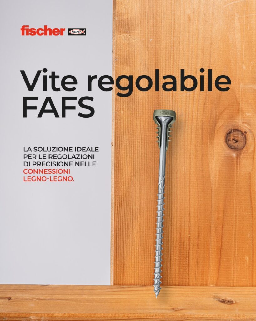 Chi lavora con il legno lo sa bene: ogni millimetro fa la differenza. Per questo fischer ha sviluppato FAFS, la vite regolabile che consente di correggere facilmente dislivelli e imperfezioni senza bisogno di spessori aggiuntivi. Una soluzione pratica, rapida e precisa che migliora la qualità delle installazioni e riduce i tempi di lavoro.